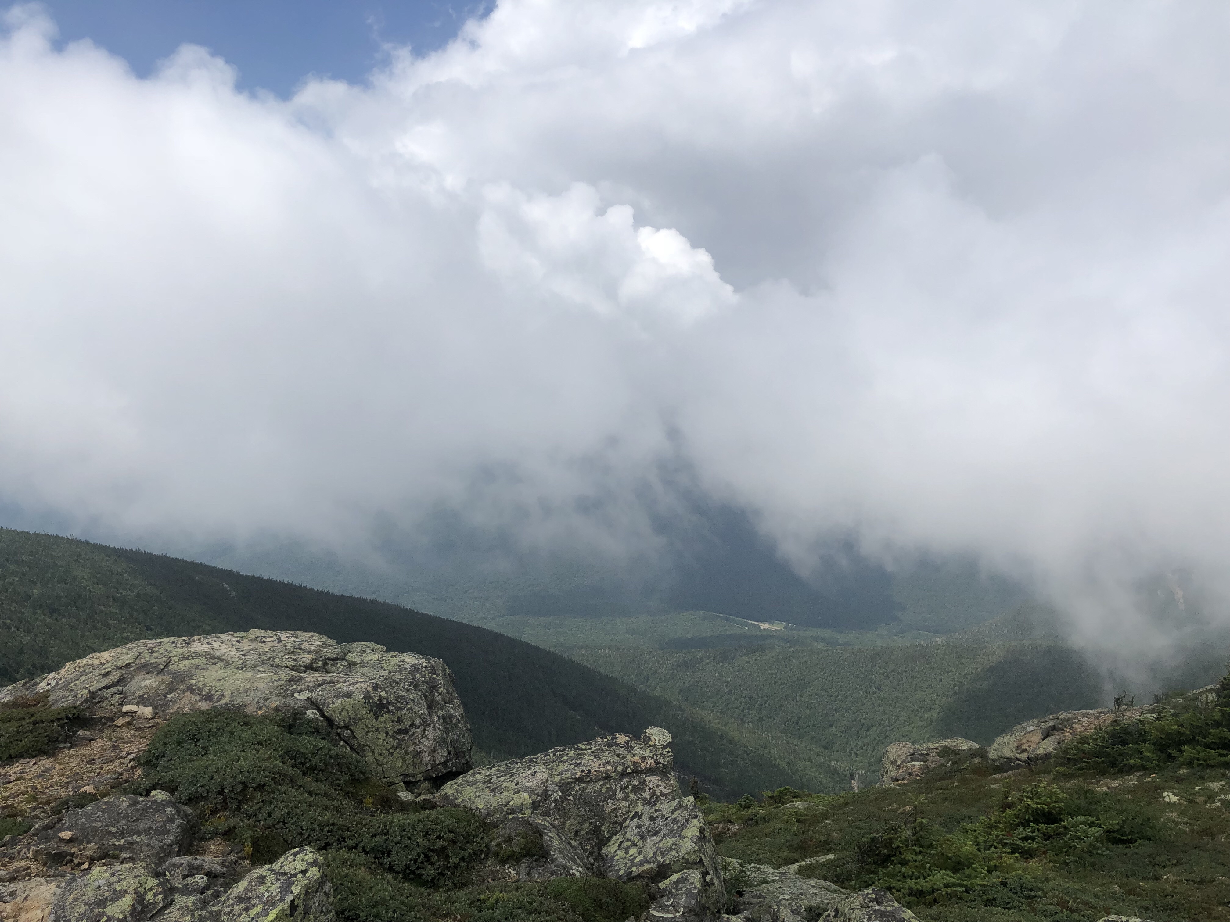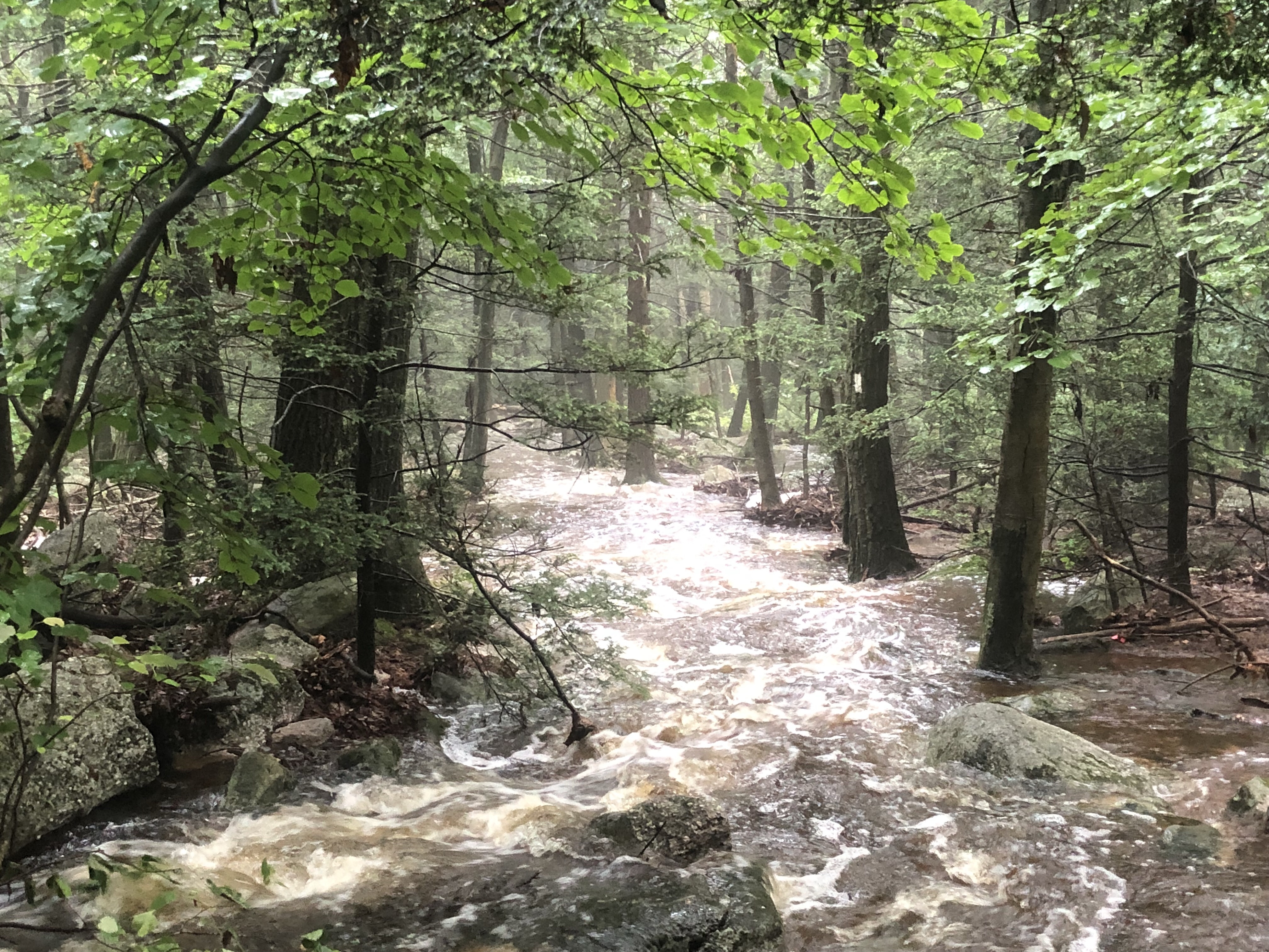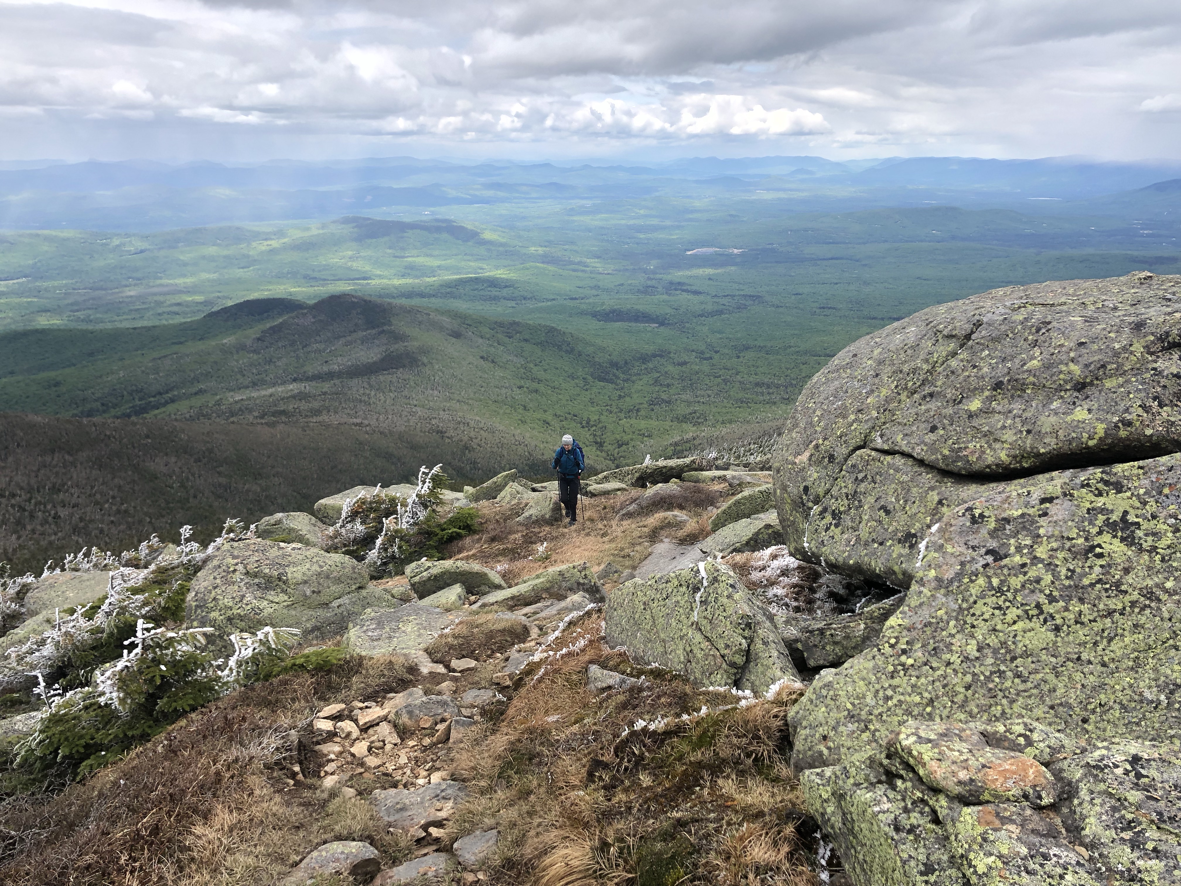 Pat pulled out all the stops. A large quiver of beverages including my favorite NH craft beer, burgers, dogs, mac and cheese, tequila, and a warm dry place for us all to sleep. The morning was no different with a nice warm breakfast of bagels, eggs, ham, and even chocolate milk. Pat drove Fiona, Ruth, and I back to the trail where would I have another nice day in the rain together hiking back up the ski slope where we would meet him again at the next road crossing at the end of the day with Tom and Brian.