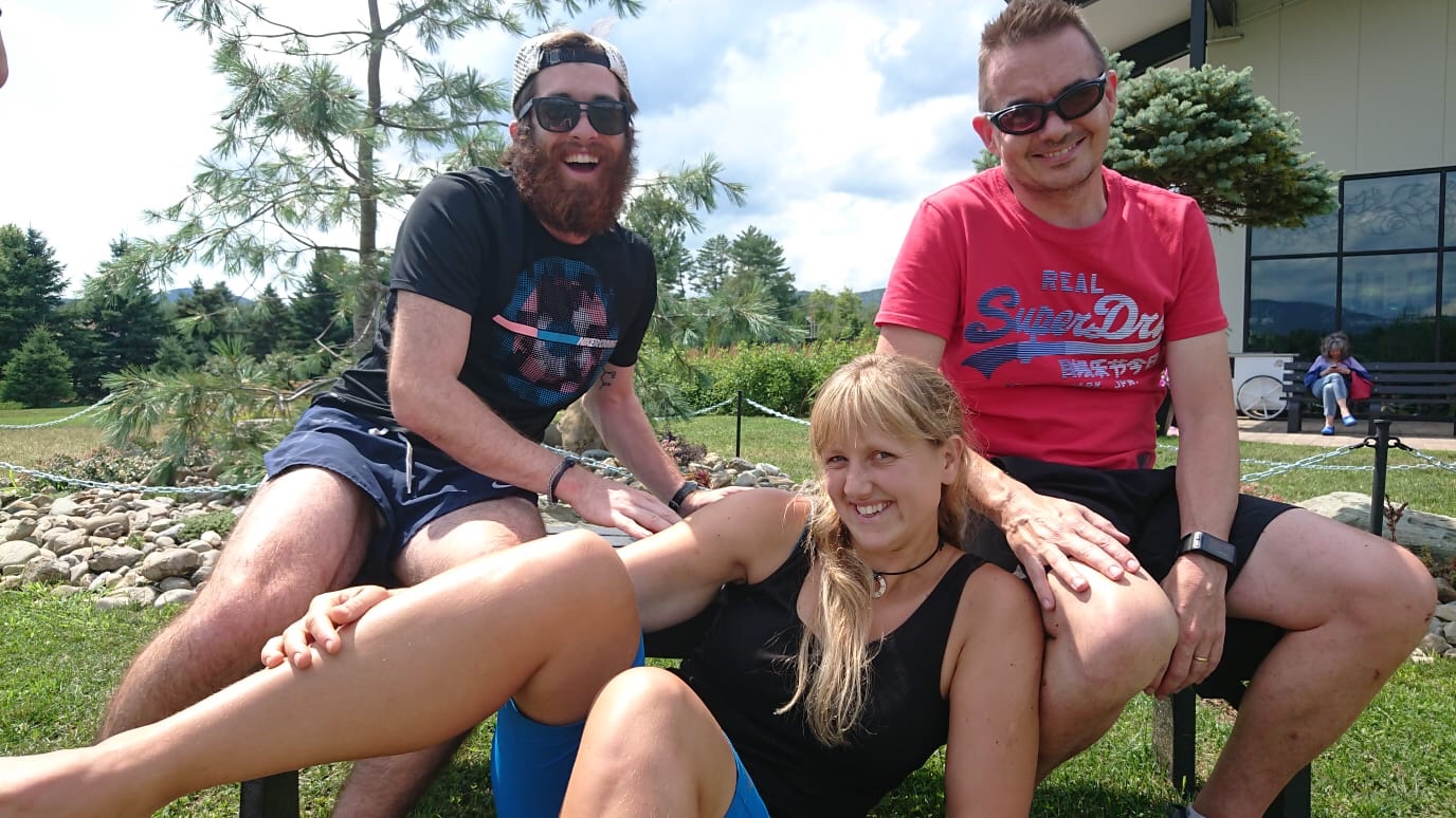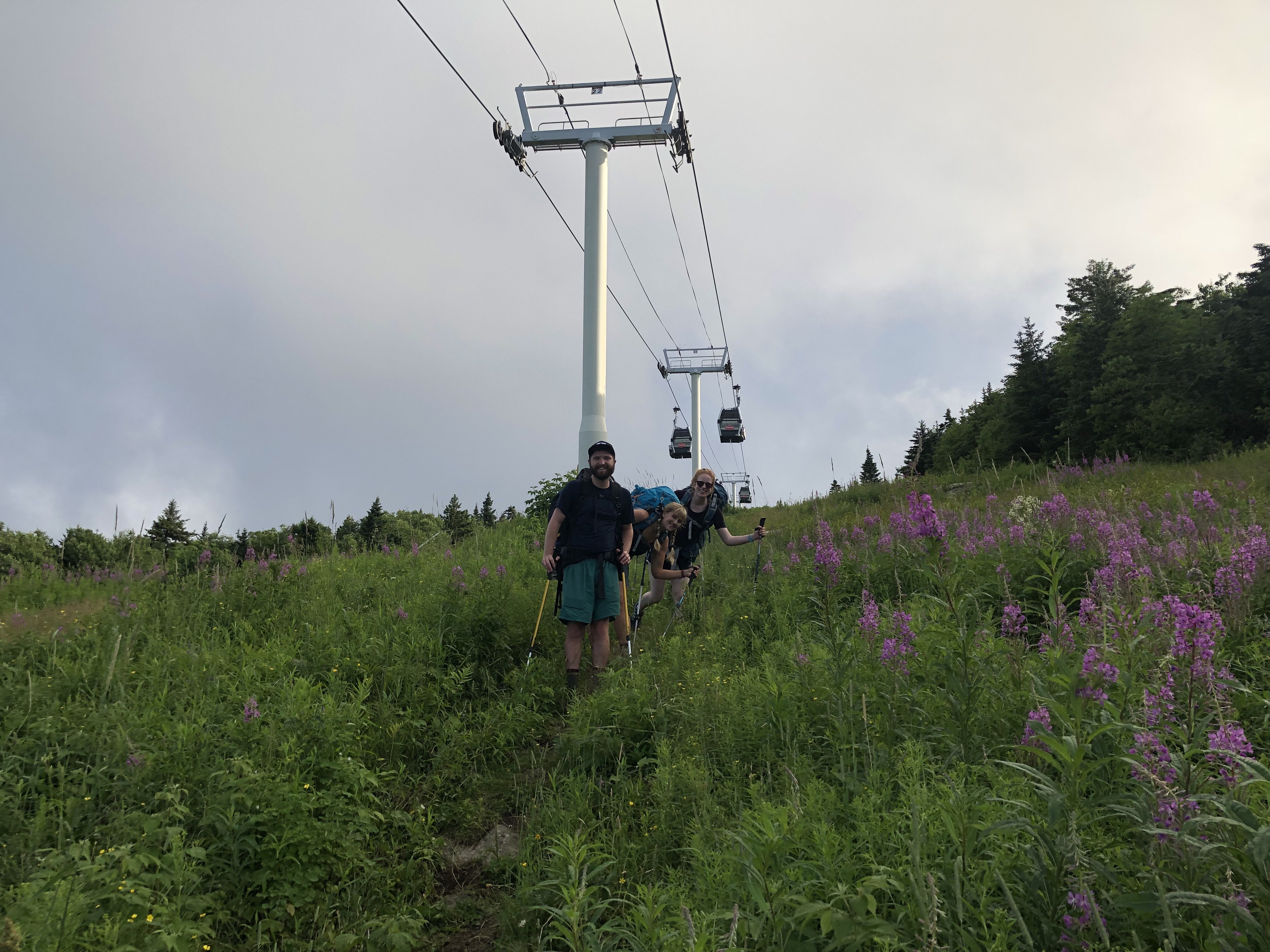 On the second night of our American Adventure, everyone was soaked to the bone from the previous day. Now donning trail names, Old Smoothie (Tom), Ca-Shew (Ruth), Lady Loch (Fiona), and S.D. (Brian), everyone felt like a real AT hiker. However, everyone, including myself, longed for a cold beer and a dry bed. One of my good buddies and former coworkers, Pat Laforge, after working a 12 hour shift, made the drive with his son Noah with their camper to Stratton Mountain. Since there was no real road crossing for us to meet him, we had to actually hike off the Appalachian Trail to the top of the ski mountain and then down the steep slope to the lodge. This hike down the ski trail did pleasantly surprise all of us with some of the best views from the weeklong jaunt.