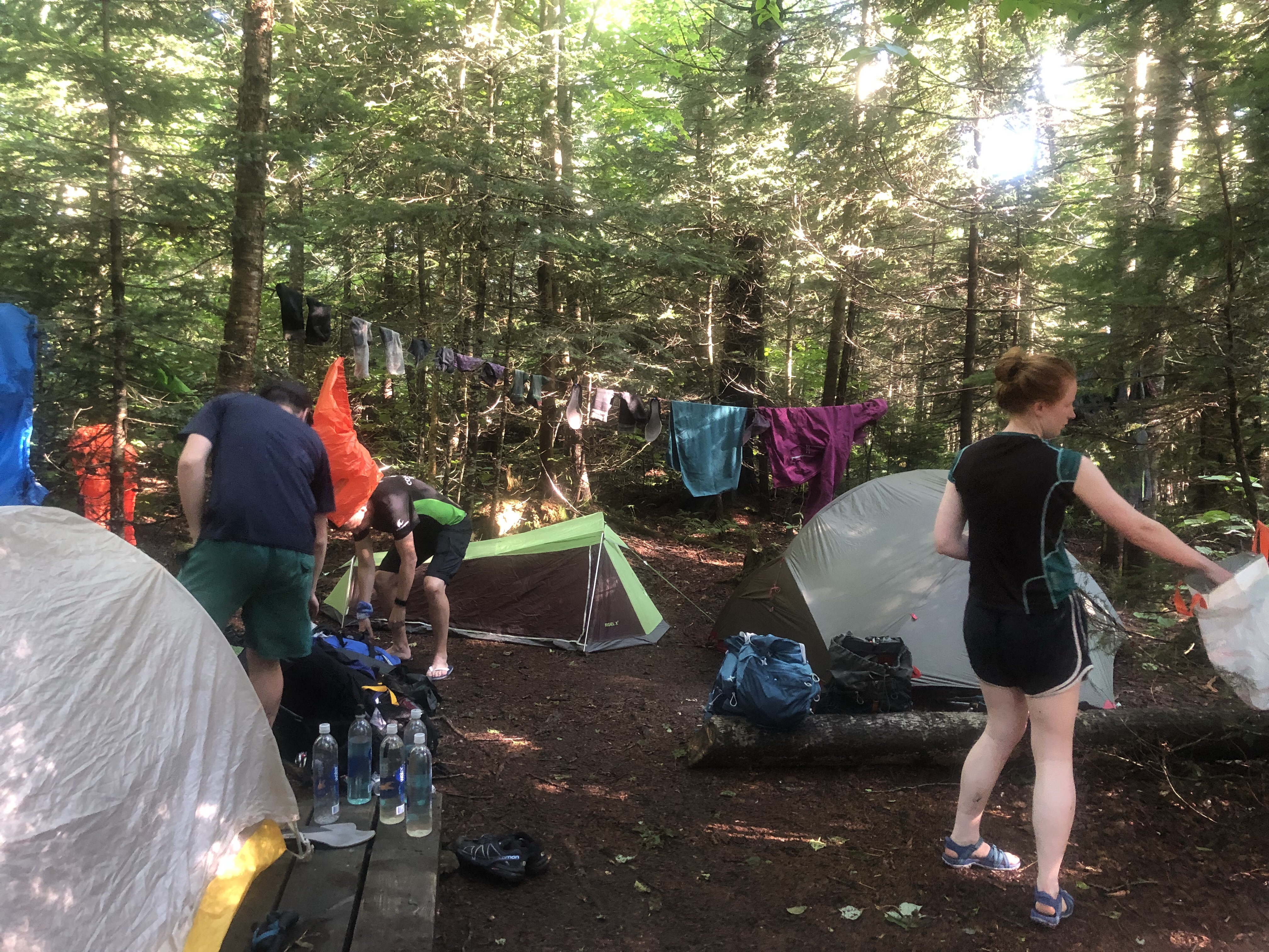 Although hesitant at first to adjust my pace, I now laugh at myself for second guessing anything at all. Over the course of the week I became a “spoiled” thru-hiker, sharing more laughs and memories than I could ever recall with people I was thrilled to share it with. It would be a drastic stretch to say that my crew was rewarded for their efforts with elegant peaks and stunning vistas. If you were to ask the four of them to sum up their trail experience in one word, my guess is that they would tell you, “trees”. But the grim weather, tough trail conditions, and lackluster views did not dissuade my temporary trail fam. They embodied the trail for what it is and what it represents, embracing the lesson that it’s not necessarily about the place but rather the people you share it with. On top of being grateful for them sacrificing time, money, and comfort to hike with me, I’m glad they got a true trail experience and honestly did not complain all that much. They even endured the standard Appalachian Trail diet which consists mainly of fruit snacks and granola bars. Everyone was a real trooper.