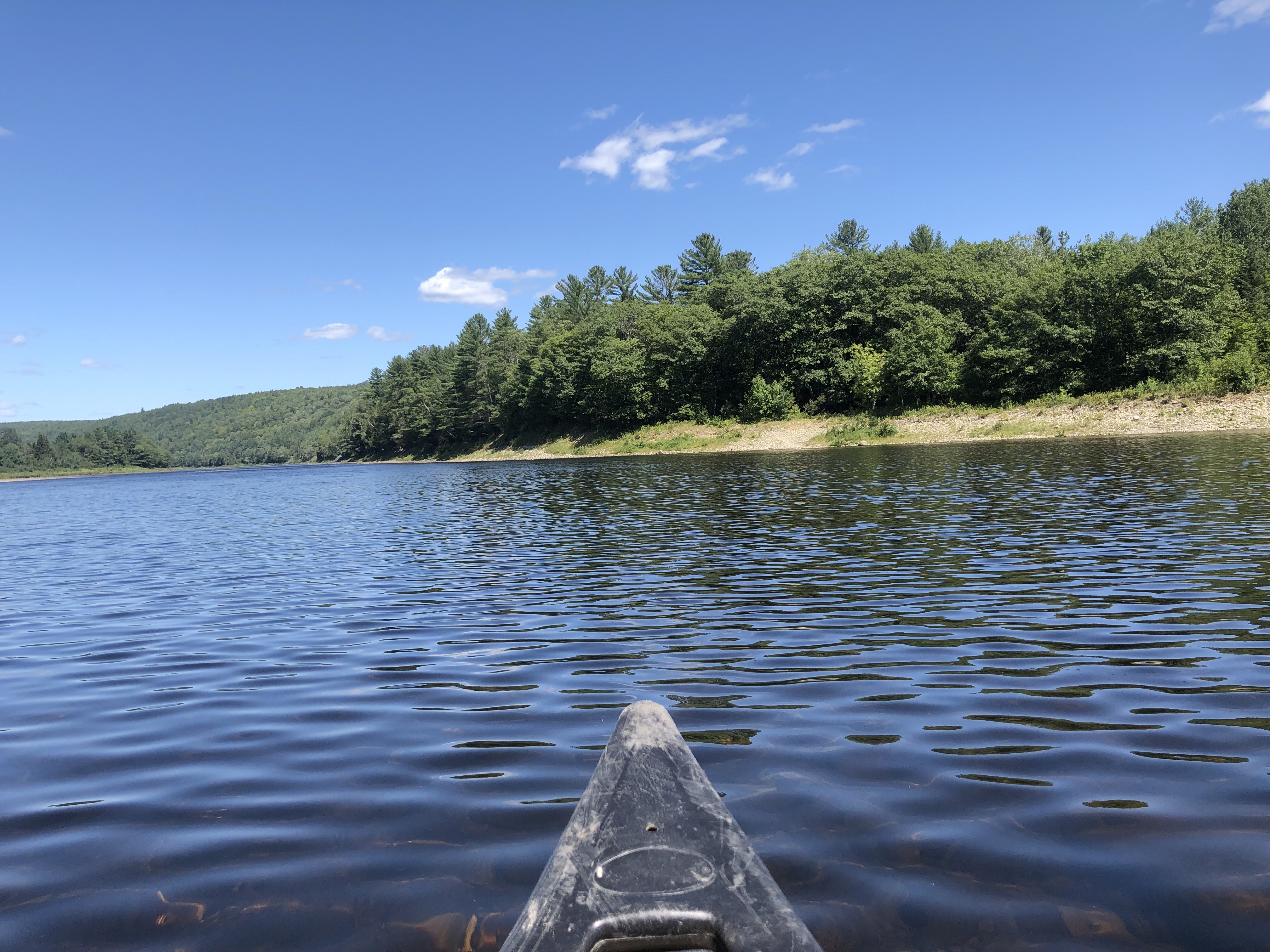 With just barely enough time to remove my pack and change from my trail runners for flip flops, I was now donning a life jacket in preparation to canoe from Upper to Lower Goose Pond to help transport one of the four resupplies of the summer back to the cabin. After about 45 minutes of paddling, my first arm day since April, we arrived at a dock on the distant shore. Once there, we loaded 120 pounds of pancake mix, 8 gallons of maple syrup, and 2 large canisters of coffee into the canoe and then turned around and paddled back.